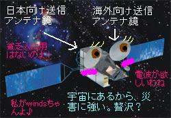 WINDSは、宇宙開発事業団と独立行政法人通信総合研究所が共同で開発を進めており、平成17年度(現在は平成19年以降)にH-IIAロケットにより打ち上げられる予定です。