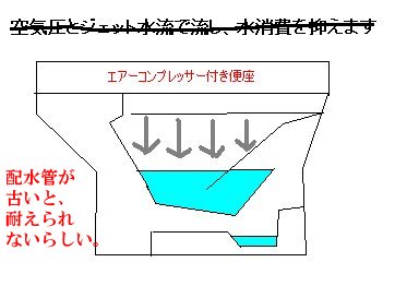 トイレの水の節約方式・改。圧力方式は、古い配水管ではダメらしい