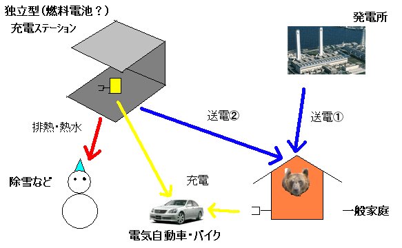 ②独立型充電ステーションをガソリンスタンドのように街中に作れば、排熱を直接利用できる。